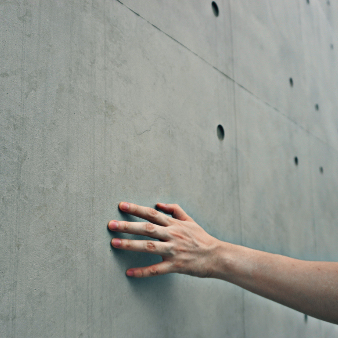 He stumbles out of the boat and disbelievingly places his hands on the wall built to contain him.